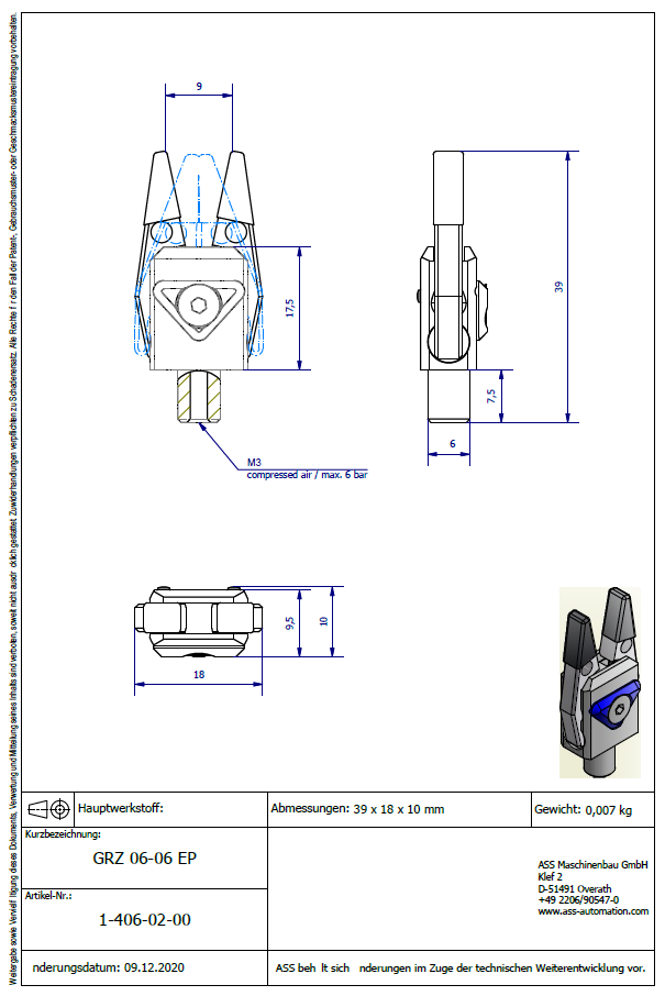 Pince Ø6mm, pistons Ø6mm, mors avec revêtement EP 60 shore